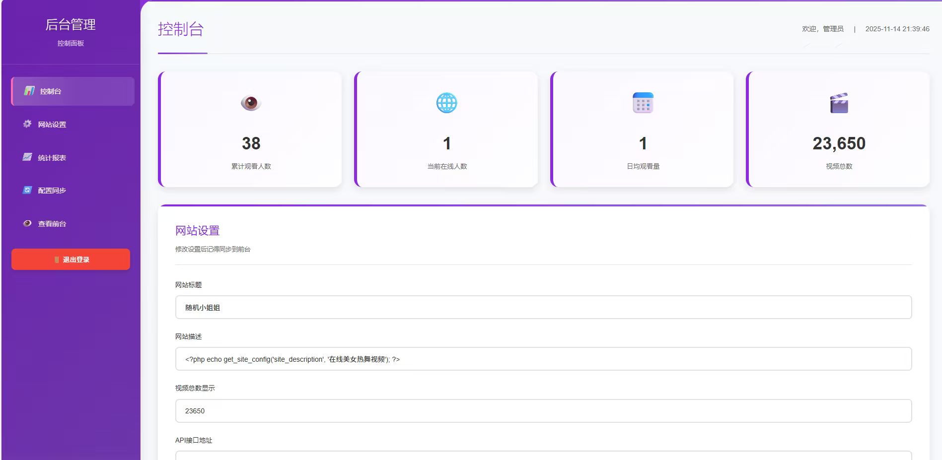 4.0版本更新了后台功能,可以自行修改接口,修改网站信息,后台统计报表等,可能会有一些小问题,有能力自行修复,有建议留下评论[呵呵]